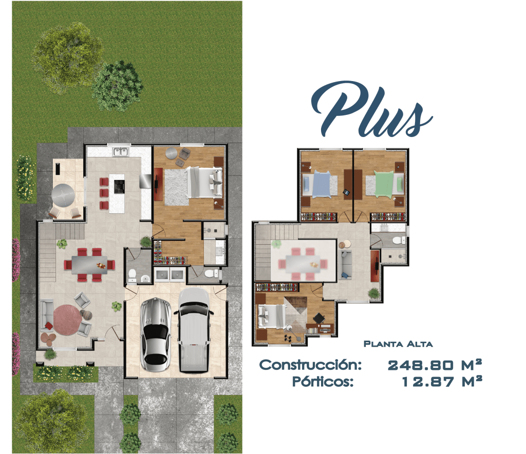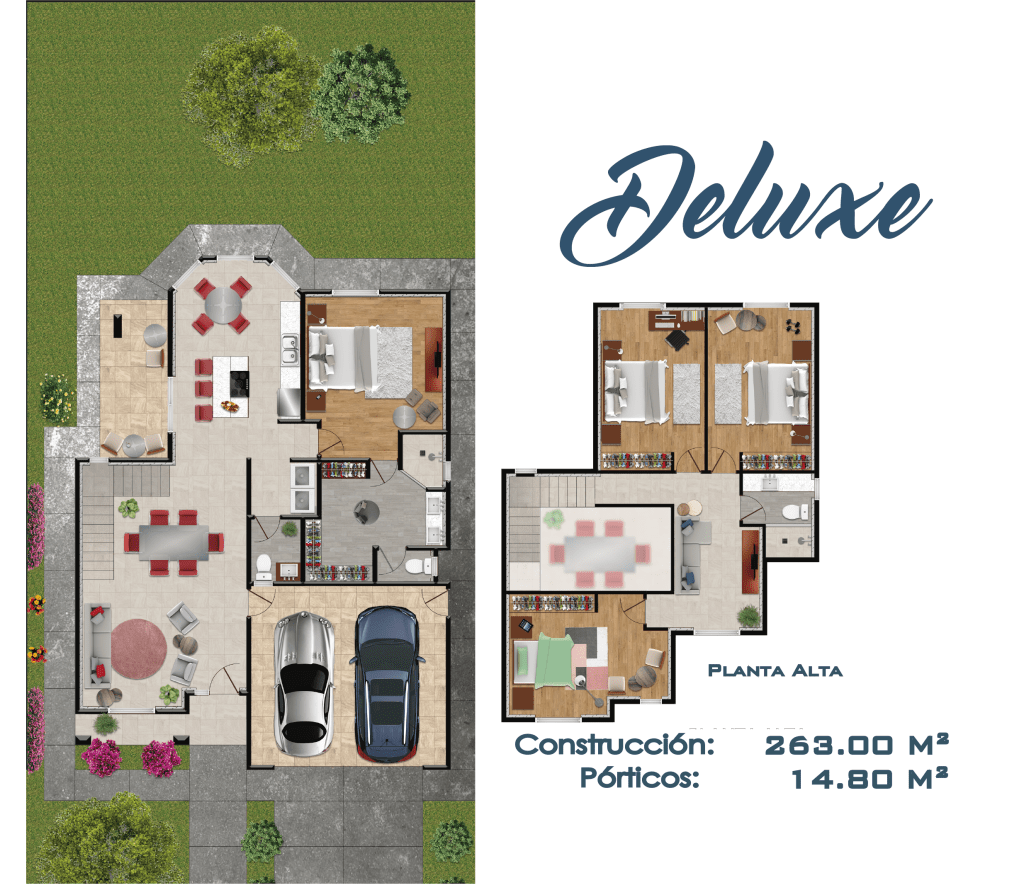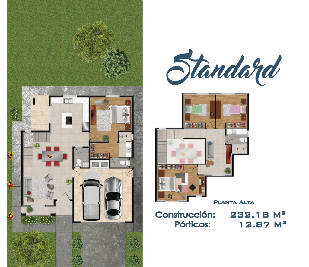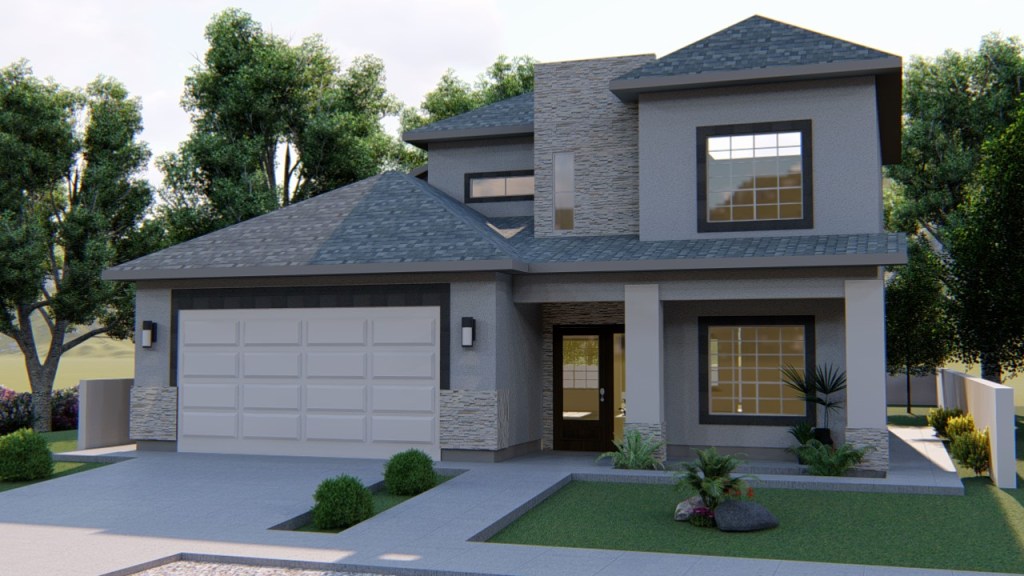 Edificación de 2 pisos, ideal para familias grandes este modelo cuenta con 4 habitaciones y una principal con vestidor en la planta baja, 2 baños y medio, cochera amplia para 2 vehículos y lavandería.